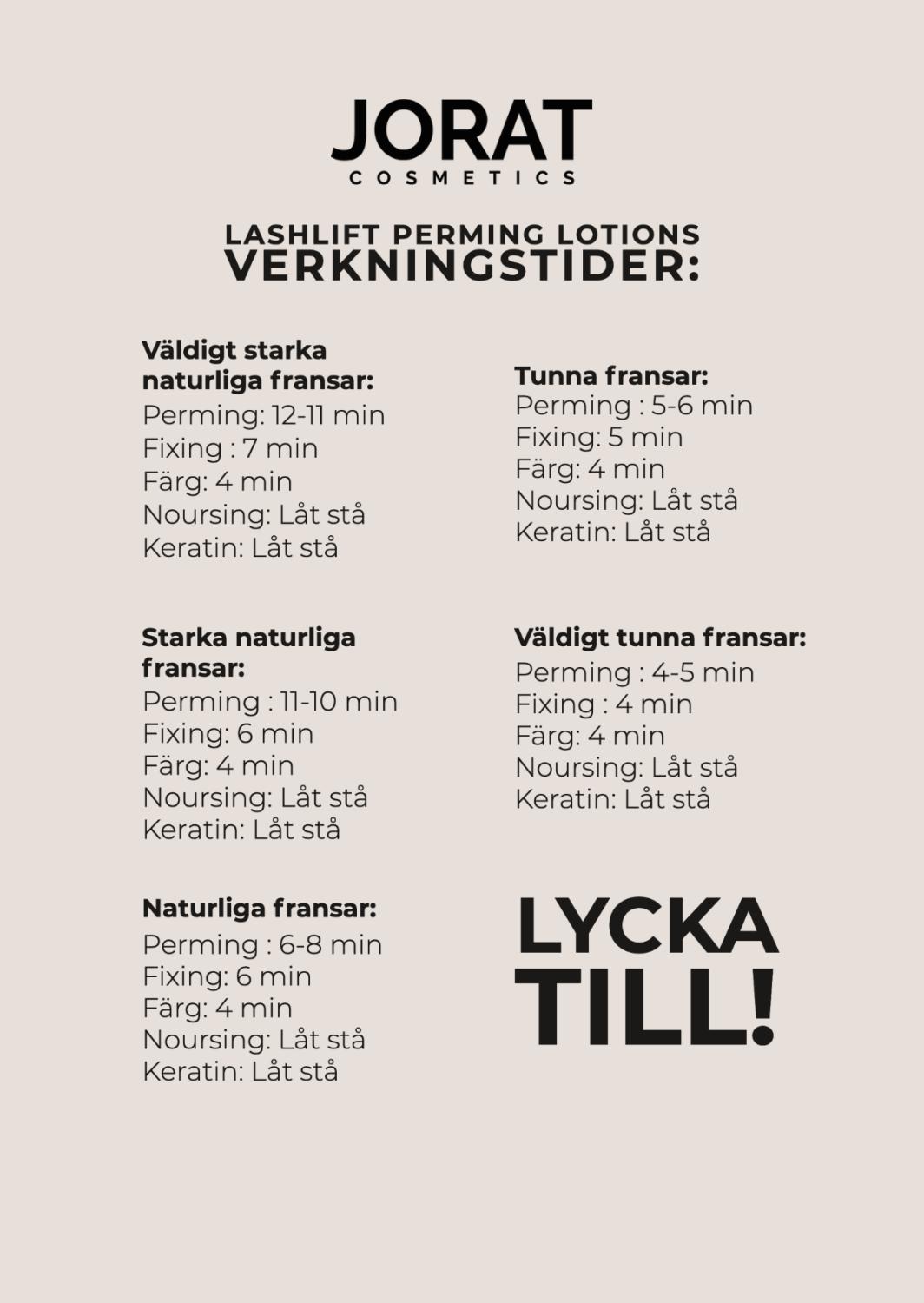 Jorat Cosmetics Lashlift Fixing lotions verkningstider: